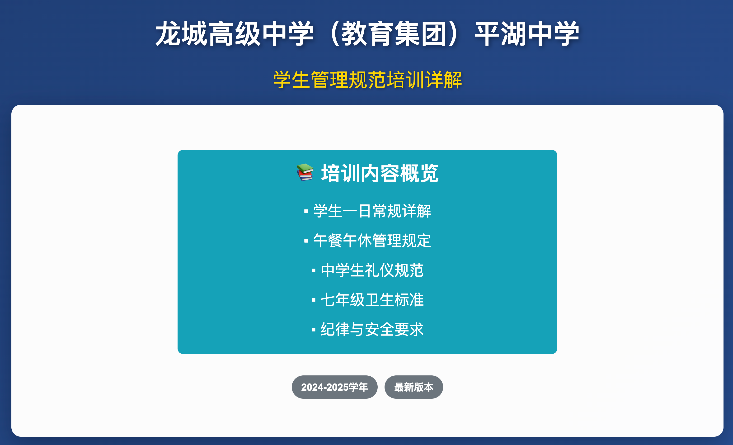 将枯燥的文字制度转化为生动的可视化时间轴网页,规范学生每日行为。