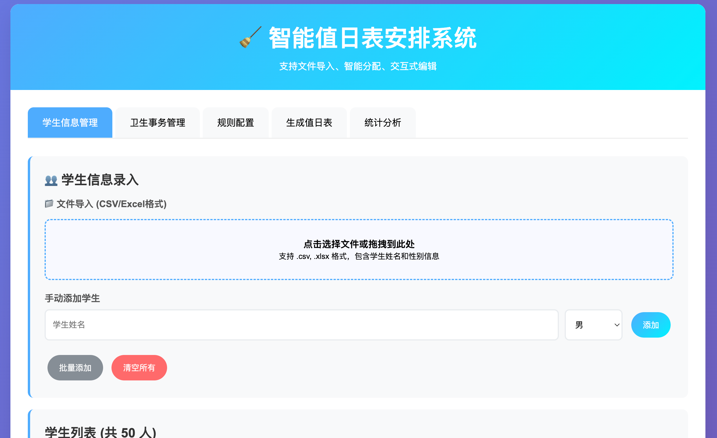 输入名单,AI 自动进行周期性排班,公平轮换,生成精美的公示海报。